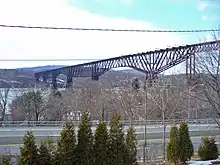 The Mid-Hudson Bridge, opened in 1930, carries US 44 and NY 55 across the Hudson River from Poughkeepsie to Highland. The Poughkeepsie Bridge opened in 1889 to carry railroad traffic across the Hudson, the usage of the bridge came to an end when a 1974 fire damaged its decking.[38] A local group (Walkway over the Hudson) raised the funds to convert the bridge into a unique linear park connecting rail-trails on both sides of the Hudson River. The Walkway Over The Hudson opened on October 3, 2009, coinciding with the 400th anniversary of Henry Hudson's first exploration of the river named for him.[39] The bridge is now open for pedestrian and bicycle use and is a state historic park.