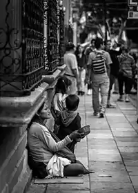 While less than 2% of Mexico's population lives below the international poverty line set by the World Bank, as of 2013, Mexico's government estimates that 33% of the population lives in moderate poverty and 9% lives in extreme poverty,[4] which leads to 42% of Mexico's total population living below the national poverty line.[5] The extreme gap is explained by the government's adoption of the multidimensional poverty method as a way to measure poverty, which outlines that a person with an income above the "international poverty line" or "well being income line", set by the Mexican government, falls in the "moderate poverty" category if he or she has one or more deficiencies related to social rights such as education (did not complete studies), nutrition (malnutrition or obesity), or living standards (access to elemental services such as water or electricity, and secondary domestic assets, such as refrigerators). Extreme poverty is defined by the Mexican government as deficiencies in both social rights and incomes lower than the "well being income line".[6] Additional figures from SEDESOL (Mexico's social development agency) estimate that 6% of the population (7.4 million people) lives in extreme poverty and suffers from food insecurity.[7]