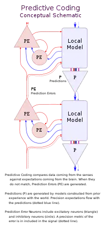 In neuroscience, predictive coding (also known as predictive processing) is a theory of brain function which postulates that the brain is constantly generating and updating a "mental model" of the environment. According to the theory, such a mental model is used to predict input signals from the senses that are then compared with the actual input signals from those senses.[1] With the rising popularity of representation learning, the theory is being actively pursued and applied in machine learning and related fields.[2]
