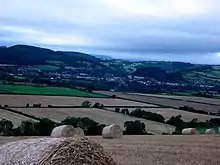 Presteigne (/prɛsˈtiːn/; Welsh: Llanandras: the church of St. Andrew) is a town and community in Radnorshire, Powys, Wales on the south bank of the River Lugg. Formerly the county town of the historic county of Radnorshire, the town has, in common with several other towns close to the Wales-England border, assumed the motto, "Gateway to Wales". The border wraps around three sides of the town (north, east and south). Nearby towns are Kington, Herefordshire to the south and Knighton to the north, and surrounding villages include Norton (within the community) and Stapleton. The town falls within the Diocese of Hereford. The community has a population of 2,710; the built-up area had a population of 2,056.[2]