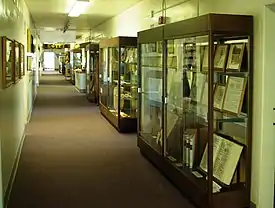 The Prewitt–Allen Archaeological Museum is situated inside Corban University's library.[7] Located on the second floor, the displays line the hallway of the library.[10] The museum is open the same hours as the library, with free admission.[10] Artifacts in the collections come primarily from the region around the Eastern Mediterranean Sea.[5] This includes the modern nations of Greece, Turkey, Lebanon, Israel, Iraq, and Egypt among others, as well as the ancient lands of Sumeria, Mesopotamia and Palestine.[11] According to the museum it is the only museum of its kind between Vancouver, B.C. and San Francisco.[2][5]