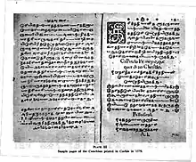 In 1577 the first of the Henriques’ five books, Doctrina Christam en Lingua Malauar Tamul (Thambiran Vanakkam) was printed in Goa. The book was the first book printed with Indian type. Although some scholars refuse to consider this as a historical fact, Graham Shaw seems convinced that it was printed. The second printed Tamil book was only 16 pages long, but a third Catechism of 127 pages, a Tamil translation of the popular Portuguese text by Marcos Jorge, was printed again with new type in Cochin on November 14, 1579. Three Catechisms were printed with three sets of type, at three different locations on the west coast over the following three years. Henriques’ two other books printed at Cochin were: