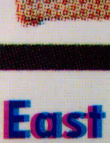 In color printing, print registration is the layering of printed patterns to form a multicolor pattern. Registration error is the "position misalignment in the overlapped patterns."[1] Machine components such as the print cylinder, doctor blade assembly, printing plates, stress/friction and more, affect the registration of the machine.[2] Inconsistencies among these components can cause the printing press to fall out of registration; that is when press operators will begin to see defects in their print. There are many different ways to achieve proper registration, many of which employ the alignment of registration marks (pictured right). Many press manufacturers have installed automatic register systems to assist the operator in getting the print back into proper alignment.