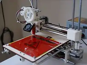 Models are printed by depositing molten ABS or PLA plastic filament onto a hotbed from a print head which moves about the X and Z axes using stepper-motors, guided by metal threaded rods.[6] The models to be printed are sent to the printer via a USB interface using specialized software such Repetier-Host (recommended by the manufacturer for use with newer printers) or Pronterface (recommended by the manufacturer at the time of Printrbot's initial launch).