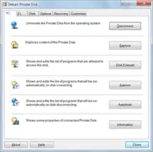 - Disk Firewall, an application-level filter, which allows only trusted programs to access the virtual drive