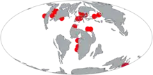 Though not the largest, Prognathodon lutugini was a large species of Prognathodon at an estimated 8 meters in length.[25] It is sometimes classified as its own genus, "Dollosaurus" and has been recovered from deposits of Late Campanian age in Ukraine. Fossils described as "Dollosaurus sp." have been recovered from deposits of a similar age in Sweden and Russia,[29] and may thus belong to P. lutugini as well.