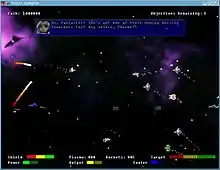 Project: Starfighter is a 2D shoot 'em up written by Parallel Realities (Stephen J Sweeney). It is a mission and objective based game also featuring an intricate plot. The game was later released by Sweeney as Freeware and the engine's source code was opened to the public. The game is now maintained and updated by the game's community as Free and open-source software.