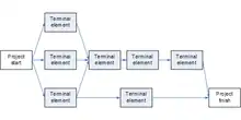A project network diagram is a graph that displays the order in which a project’s activities are to be completed. Derived from the work breakdown structure, the terminal elements of a project are organized sequentially based on the relationship among them. It is typically drawn from left to right to reflect project chronology.[1]