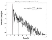Denoting the Fourier transform of the transmitted signal by , the received signal reads in the frequency domain