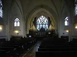 The Protestant Church of Reims (French: Temple protestant de Reims) is a large Protestant church in Reims, France, built in 1921–1923 to replace an earlier building that had been destroyed during World War I (1914–1918). The building is in flamboyant Neo-Gothic style. Originally the interior was decorated with Art Deco frescoes, but these deteriorated and have been painted over.