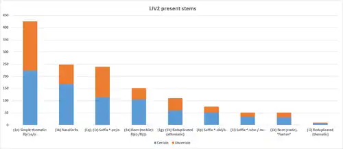 | Reduplicated thematic[* 2] | a few verbs[* 3] | a few verbs[* 4] | a few verbs[* 5] | relics[* 6] | |||||||