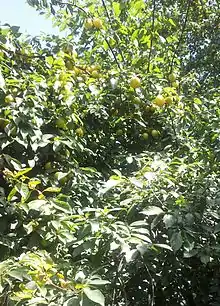In Georgia, it is eaten in hand and is used to make tkemali, a tart sauce for meat dishes. Although it is probably conspecific with Prunus cerasifera, the cherry plum (in Georgian: ტყემალი, romanized: t'q'emali), Georgians distinguish the two botanically and culinarily.[1] In the Caucasus, P. vachuschtii tends to be found from Caspian sea level up to 500–700 m and P. cerasifera tends to be found at higher elevations, up to 1600–1800 m.