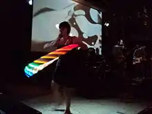 A retro example of psychedelia; the dancer combines 1960s fashion with modern LED lighting.