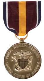 The Public Health Service Distinguished Service Medal is an honor award presented to members of the United States Public Health Service Commissioned Corps and to members of any Uniformed Services of the United States whose accomplishments or achievements are of outstanding or unique significance to the missions of the Corps. This is the highest award presented by the United States Public Health Service. It is the highest decoration of the United States Department of Health and Human Services Public Health Service Commissioned Corps.[3]