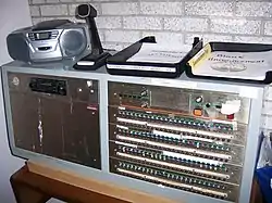 In 1913, multiple units were installed throughout the Comiskey Park baseball stadium in Chicago, both to make announcements and to provide musical interludes,[7] with Charles A. Comiskey quoted as saying: "The day of the megaphone man has passed at our park." The company also set up an experimental service, called the Musolaphone, that was used to transmitted news and entertainment programming to home and business subscribers in south-side Chicago,[8] but this effort was short-lived. The company continued to market the enunciators for making announcements in establishments such as hospitals, department stores, factories, and railroad stations, although the Automatic Enunciator Company was dissolved in 1926.[5]