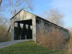 Pugh's Mill Covered Bridge is a registered historic structure near Oxford, Ohio, listed in the National Register on 1975-06-05. This wooden bridge was built in 1869 over Four Mile (Talawanda) Creek and is one of two remaining covered bridges in Butler County, Ohio. The other is the Bebb Park or State Line covered bridge built in 1868. [2]