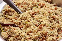 Pulihora, also known as pulisoru, pulinchoru, puliyogare, puliyodarai, ambad baath, kokum rice, or simply tamarind rice or Pavan Maruthi, is a very common and traditional rice preparation in the South Indian states of Andhra Pradesh, Karnataka, Kerala, Tamil Nadu and Telangana.[1] Puli means 'tangy' or 'sour' in South Indian languages, referring to the characterizing use of kokum or tamarind as one of the main ingredients.