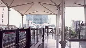 Pulomas Station is a light rail station of the Jakarta LRT Line A, located at Kayu Putih, Pulo Gadung, East Jakarta. The station is one of the six stations of the first phase of Jakarta LRT Line A which opened on 1 December 2019.[4]