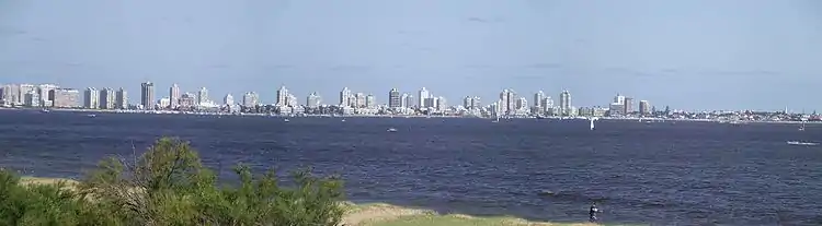 Punta del Este (Spanish pronunciation: [ˈpunta ðel ˈeste]) is a seaside city and peninsula on the Atlantic Coast in the Maldonado Department of southeastern Uruguay. Starting as a small town, Punta del Este later became internationally known as a resort for the Latin and North American jet set and tourists. The city has been referred to as "the Monaco of the South", "The Pearl of the Atlantic", "the Hamptons of South America","the Miami Beach of South America", or "the St. Tropez of South America".[1][2][3][4]