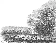 The most commonly accepted account of the battle, pieced together from reports from Lee and Captain Joseph Graham, indicates that Lee's deception was purely chance, and that he had originally intended to avoid the Loyalists, intending instead to encounter Tarleton's Dragoons, the more important objective. The sounds of battle apparently commenced when the militia at the rear of Lee's Legion, recognizing the strips of red cloth on the hats of Pyle's men as the badge of Loyalists, alerted Captain Eggleston, who was new to the South and was not familiar with local Whig and Tory badges. When he asked one of the Loyalists which side he was on, the man replied "King George", and Eggleston responded by striking him on the head with his sabre. Seeing this, Pickens' riflemen joined in the attack.[1] The cavalry line turned and also attacked the Loyalists. Pyle's men broke and ran, but many were either killed or wounded in the early exchanges. Many Loyalists, believing the attack to be a mistake, continued insisting they were on King George's side, to no avail. After 10 minutes, the remaining Loyalists had fled, and 93 Loyalists were known to be dead, certainly more were wounded and others were seen being carried off by friends.[2] According to local legend, John Pyle was badly wounded in the battle and crawled into a nearby pond where he concealed himself until he could be rescued. After recovering from his wounds, he surrendered to the local militia. Later they were pardoned because of Dr. Pyle's care for wounded patriots.