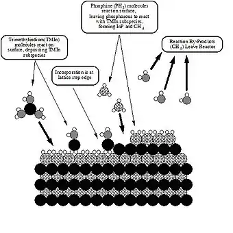 Illustration of the metalorganic vapour phase epitaxy process, which entails pyrolysis of volatiles