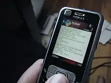 The Python for S60 also called PyS60 (Unix name), was Nokia's port of the general Python programming language to its S60 software platform, originally based on Python 2.2.2 from 2002.[1] The latest final version, PyS60-2.0.0, released on 11 February 2010 updated the python core to version 2.5.4.[2]