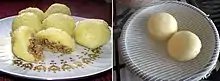 ![]() Homemade pyzy: boiled potato-based with meat filling (left) and steamed leavened (right) | |