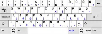The Serbo-Croatian Latin and Slovene keyboard layout has five additional special characters Č, Ć, Ž, Š and Đ. This keyboard layout was standardized in the 1980s in Yugoslavia. Characters Ć and Đ are only part of Gaj's Latin alphabet but not part of the Slovene alphabet, nevertheless they remain in Slovenian keyboards (for economic reasons, for historical reasons and for writing words in the closely related South Slavic languages). The Ž is on the right side of the Ć key on keyboards which have a longer backspace key, and the usual inverted L shaped Enter key. The layout makes heavy use of the AltGr (right Alt) key for non-alphabetic characters and dead key combinations for adding diacritics to Latin characters. It is possible to type German, Hungarian, Italian and Polish using only the Serbo-Croatian keyboard layout.