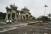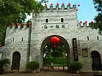Qianshan's Meixi Village is the home to the Meixi Royal Stone Archways. The three engraved granite archways were built by order of the Guangxu Emperor in 1886 and 1891 in honor of Chen Fang (t 陳芳, s 陈芳, Chén Fāng) or Chun Afong, a native of Meixi who served as China's first consul to Hawaii and became a prominent philanthropist. It is surrounded by a 126,000 m2 (31-acre) park[19] covering the old Chen estate, expanded by Chen's son Tony (t 陳席儒, s 陈席儒, Chén Xírú),[20] and its gardens.[21] The site also houses the Waxworks Hall of Historical Figures of Zhuhai and a folk art exhibition.[22][21]