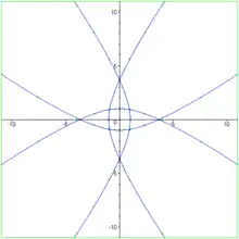 The quadrifolium (also known as four-leaved clover[1]) is a type of rose curve with an angular frequency of 2. It has the polar equation: