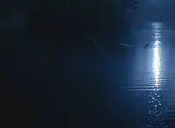 ![]() "Big Blue" moves silently through the water. The scene was created via digital effects and was criticized by several critics. | |