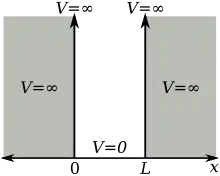 The particle in a one-dimensional potential energy box is the most mathematically simple example where restraints lead to the quantization of energy levels. The box is defined as having zero potential energy everywhere inside a certain region, and therefore infinite potential energy everywhere outside that region.[19]: 77–78 For the one-dimensional case in the direction, the time-independent Schrödinger equation may be written