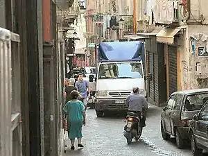 Quartieri Spagnoli (Spanish Neighborhoods) is a part of the city of Naples in Italy. The Neapolitan language is stronger here than anywhere else. The area, encompassing c. 800,000 square metres, consists of a grid of around eighteen streets by twelve, including a population of some 14,000 inhabitants.