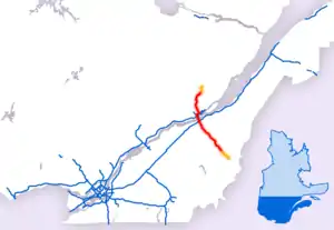| St. Lawrence River | 88.4– 89.8 | 54.9– 55.8 | Pont Pierre-Laporte North end of Autoroute Robert-Cliche • South end of Autoroute Henri-IV | |||