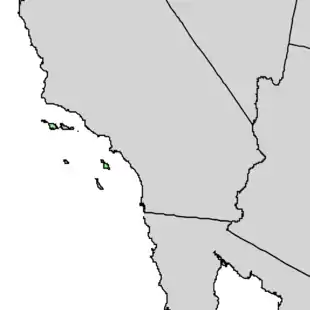 The tree is endemic to the California Channel Islands, on Santa Cruz Island, Santa Rosa Island, and Santa Catalina Island, in Southern California.[3] It is found in chaparral and woodlands habitats in canyons and slopes below 600 metres (2,000 ft).[3]