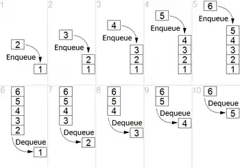 Also called first-come, first-served (FCFS),[20] this principle states that customers are served one at a time and that the customer that has been waiting the longest is served first.[21]