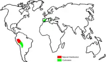 | Natural distribution in red, Cultivation in green | |