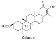 Celastrol is a triterpenoid quinone methide isolated from Tripterygium wilfordii (Thunder of God vine) and Celastrus regelii that exhibits antioxidant (15 times the potency of α-tocopherol),[6] anti-inflammatory,[7] anticancer,[8][9][10][11] and insecticidal [12] activities.