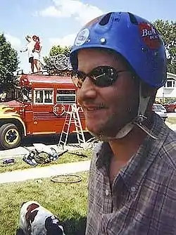 Ben Davidson, former professional football star player mainly with the Oakland Raiders, rode on RAGBRAI for several years, beginning in 1987.[71] Lance Armstrong rode the Wednesday and Thursday stages in 2006, speaking to a large throng of the riders in Newton. He then completed most of the 2007 ride before leaving a couple of days early to support Team Discovery's Alberto Contador and his Tour de France victory.[20] In 2008, Armstrong also made an appearance on the Ames, Iowa, leg of the trip. In 2011, 2013, 2014, 2017, and 2018, he again participated.[72][73][74] Ottumwa-born actor/comedian Tom Arnold has ridden a few RAGBRAIs, including XXIV in 1996.[75][76] Other participants have included three-time Tour de France champ Greg LeMond, columnist Dave Barry, NASCAR drivers Matt Kenseth and Jimmie Johnson, Motocross champion Ryan Dungey, 2004 Democratic presidential candidate Howard Dean and former Secretary of the Interior Bruce Babbitt.[77][78] Colorado governor and Democratic Presidential candidate John Hickenlooper rode in the 2019 ride. Hickenlooper, his spouse and his crew joined Team Skunk in Indionola where he provided a keg of his signature beer while using the shower of the host home.