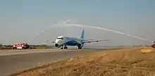 RAK Airways was an airline based in Ras Al Khaimah, one of the seven states in the United Arab Emirates.[1][2] It was established in 2006 but briefly ceased operations in 2009 and relaunched in 2010 with a new livery and under new management.[3] On 1 January 2014, the airline suspended all its flights but announced that they may resume at a future date after a restructuring process.[2][4]