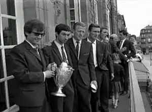 During the 1960s, the club was able to participate in the Inter-Cities Fairs Cup thanks to the city's Foire européenne. In 1964–65 under Paul Frantz's guidance, Racing ousted giants Milan and Barcelona before falling in the quarter-finals against Manchester United. A year later, they repeated as cup winners beating champions Nantes in final by the score of 1–0. On this occasion, captain René Hauss accomplished the remarkable feat of winning two cups with the same club with a 15 years-interval. Other key team members during this era included Raymond Kaelbel and young talents Gilbert Gress and Gérard Hausser. Again, Racing's triumph in the cup was not without controversy, reporter Thierry Roland said on live TV that "the cup [was] leaving France", a comment that was deemed offensive by many in Alsace.[11]