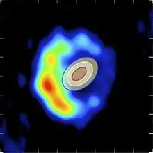 On 12 February 2006 a new outburst occurred, reaching magnitude 4.5. The opportunity was taken to observe it at different wavelengths. It was notably observed with the VLTI by Olivier Chesneau, who discovered an elongated fireball as early as 5.5 days after the explosion (see the figure below).[6][7][8] Silicate dust and SiO emissions were observed after eruptuon.[9]