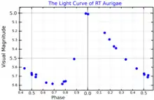 A visual band light curve for RT Aurigae, adapted from Kiss (1998)[12]