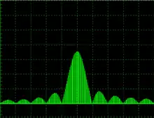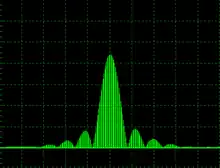 Pure CW radars appear as a single line on a Spectrum analyser display and when modulated with other sinusoidal signals, the spectrum differs little from that obtained with standard analogue modulation schemes used in communications systems, such as Frequency Modulation and consist of the carrier plus a relatively small number of sidebands. When the radar signal is modulated with a pulse train as shown above, the spectrum becomes much more complicated and far more difficult to visualise.