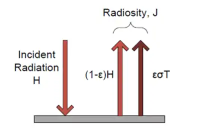 For an opaque surface, the transmitted component of radiosity Je,tr vanishes and only two components remain: