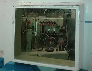 Radiosynthesis is a fully automated synthesis method in which radioactive compounds are produced.[1] Radiosynthesis is generally carried out by several nuclear interface modules, which are protected by the lead shielding and controlled by a computer semi-automatically. The set-ups of modules are different depending on the type of product and synthesis process. Consequently, the modules should be adapted with the synthesis stages. In some cases, such stages of synthesis are carried out manually in order to optimize the radiochemical yield or due to the incompatibility or lack of module.[2]