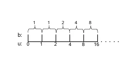 - and for : the sizes of the buckets increase exponentially.
