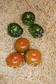 The Raf tomato is a tomato (Solanum lycopersicum, Solanaceae) obtained from artificial selection practiced on traditional tomatoes are planted outdoors since 1961. It is originally from Spain.[1] The Raf tomato Marmande is a variety which stands out for its flavor and texture, as well as its resistance to water with high salt content.