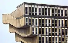 Among his notable works is the Hotel du Lac in Tunis (1970–1974) which he designed in a brutalist style[1] and has been seen as symbolic of the modernisation of Tunisia in the 1970s.[4] Its distinctive shape has been described as the inspiration for the sandcrawler vehicle of the Star Wars films, as significant parts of the first trilogy were filmed in the country.[5] However, British director and set designer Roger Christian has said that the sandcrawler was designed by Ralph McQuarrie before Star Wars director George Lucas visited Tunisia.[5] As of April 2019, the hotel is unoccupied and being considered for demolition.[5]