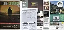 The Raglan Chronicle, formerly the Raglan County Chronicle, is a free fortnightly newspaper published in Raglan and delivered to most homes west of the summit of State Highway 23. Circulation figures are not published, but the 2013 Census showed 1,143 dwellings in Raglan and 681 in Te Uku area units,[1] in addition to which copies are available in Raglan shops and cafes. In 2017 circulation was estimated at 3,000 copies a week.[2] Copies can also be downloaded from the website.[3]